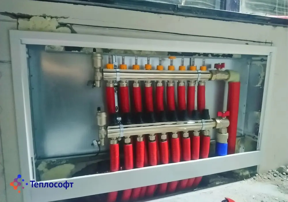 На даному об’єкті від існуючої системи теплопостачання буде передбачено два розподільчих колектора теплої підлоги з відповідної кількістю контурів. Трубопроводи теплої підлоги змонтовано із зшитого поліетилену PE-Xa з тришаровим кисневим бар’єром EVOH фірми «ICMA». По завершенню монтажних робіт було проведено комплекс пуско-налагоджувальних робіт з заповненням водою та розповітренням контурів теплої підлоги.