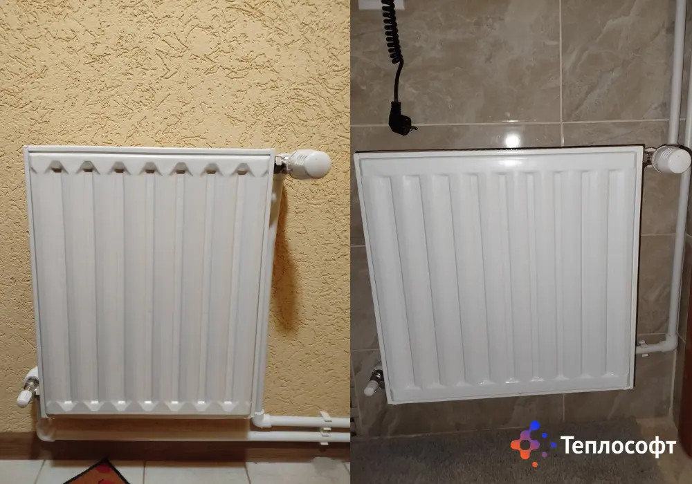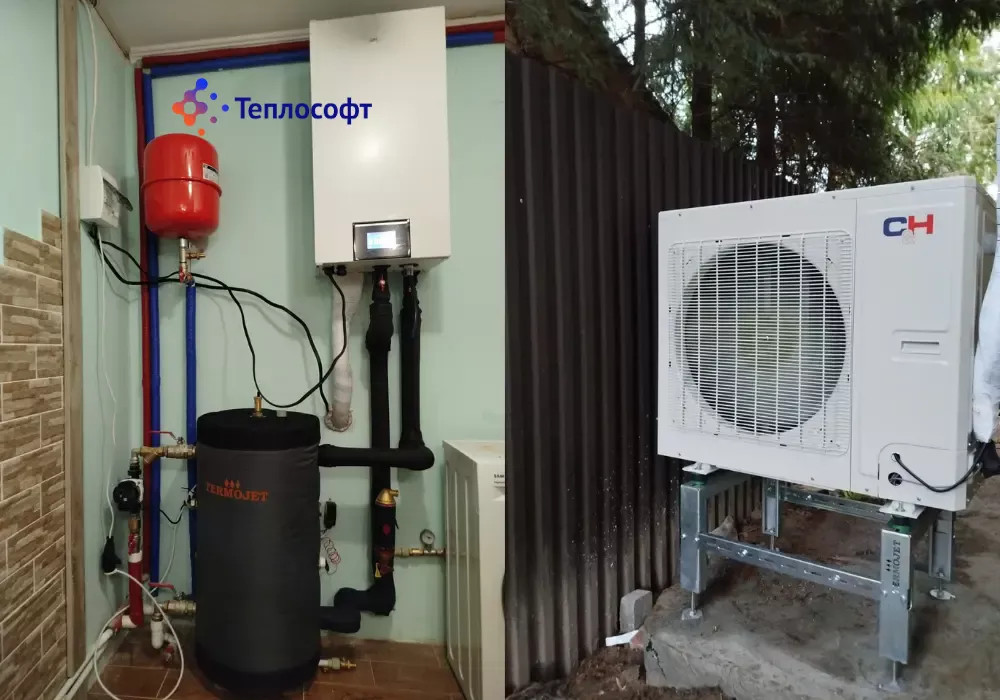 Для подключения теплового насоса использована полипропиленовая труба. Для предотвращения попадания грязи в тепловой насос смонтирован магнитный сепаратор грязи. Смонтировали буферную емкость на 100 л. Также предусмотрели запорную арматуру для удобства обслуживания системы. Трубопроводы для отопления сделаны снаружи. Смонтировали панельные радиаторы с боковым подключением с термоголовкой, которые рассчитаны для работы с тепловым насосом.
