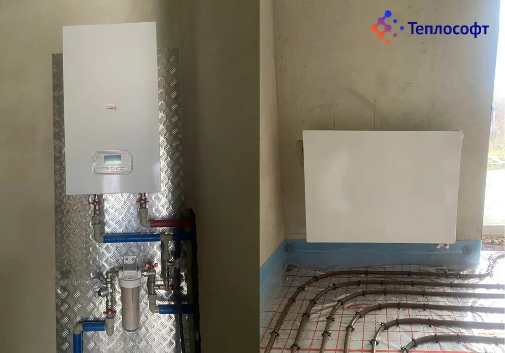 Нами была смонтирована система отопления, холодное, горячее водоснабжение и канализация в двухкомнатной квартире в с. Солонка. Источник отопления представляет собой электрический котел. Система отопления комбинированная - теплый пол и радиаторы. Для водоснабжения использована полипропиленовая труба. Смонтирован редуктор давления для холодной воды и установка для подвесного унитаза. Предусмотрено управление теплым полом с помощью комнатного термостатата.